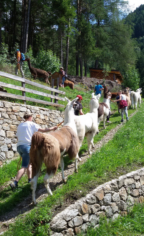 Angepasst an die Wander-Kondition der Kleinsten (oder Ältestens) sind wir - reine Gehzeit - ca. 1 bis 1,5 Stunden mit den Tieren unterwegs. Da Lamas und Alpakas sehr gemütliche Tiere sind, kommen Jung und Alt dabei selten außer Atem ;-).